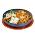 Ingrediente: file pește 250 gr, cartofi prăjiți 200 gr, salată 50 gr, sos 30 gr