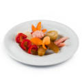 Ingrediente: lipie 50 gr, caracatiță 80 gr, creveți 70 gr, salată iceberg 20 gr, roșii...